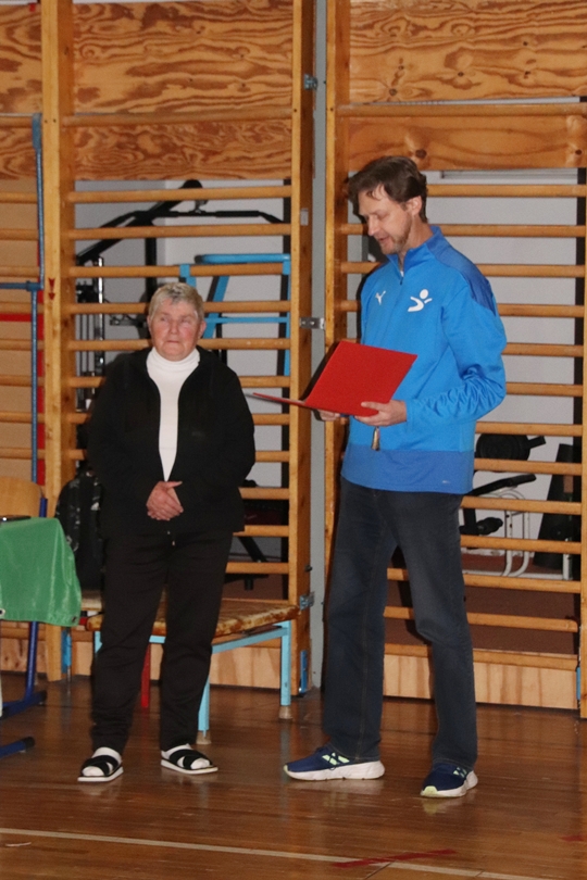 Ehrung der Sportlerin des Jahres (Sabine Ludwig) durch den Vereinsvorstand.